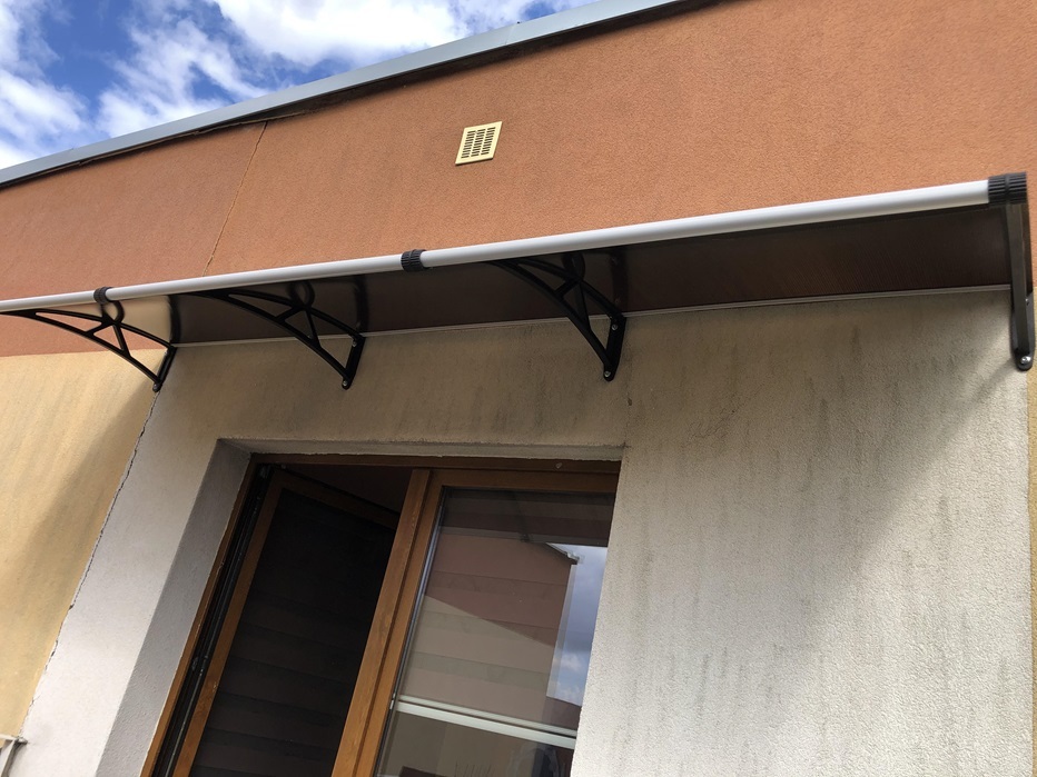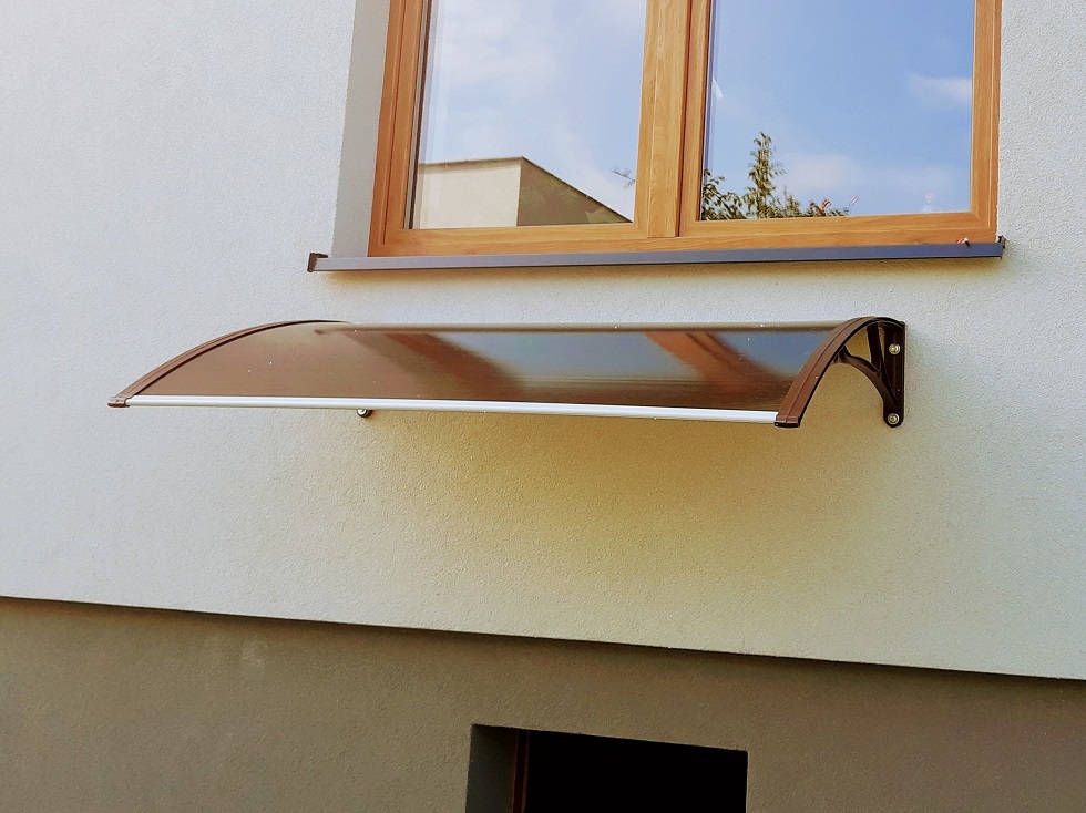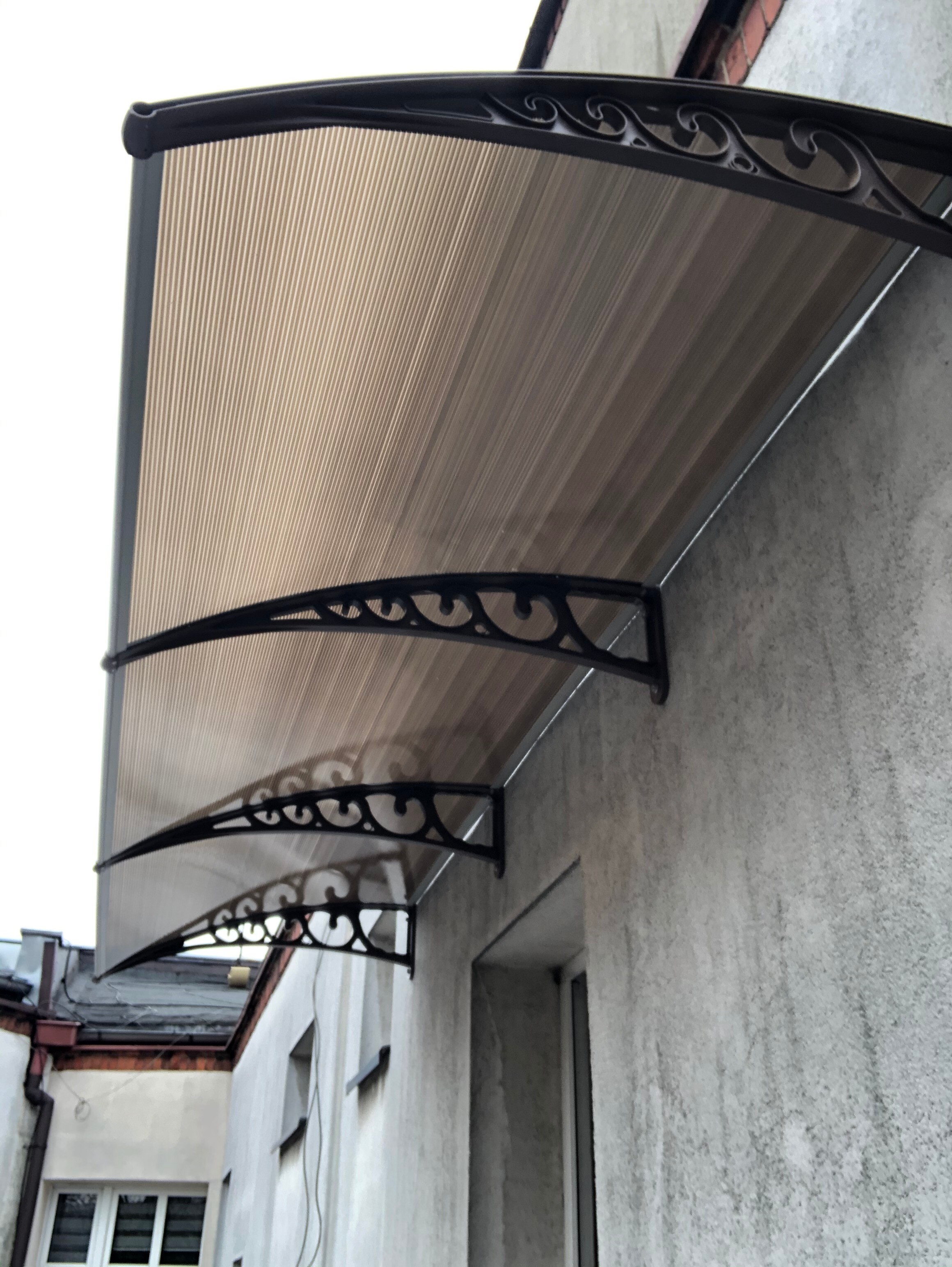 Zadaszenie składa się z zestawu wsporników poliwinylowych o bardzo wysokiej, jakości i wytrzymałości dostępnych w kolorze szarym, lub czarnym, płyty z poliwęglanu komorowego o grubości 6mm, zestawu listew aluminiowych.